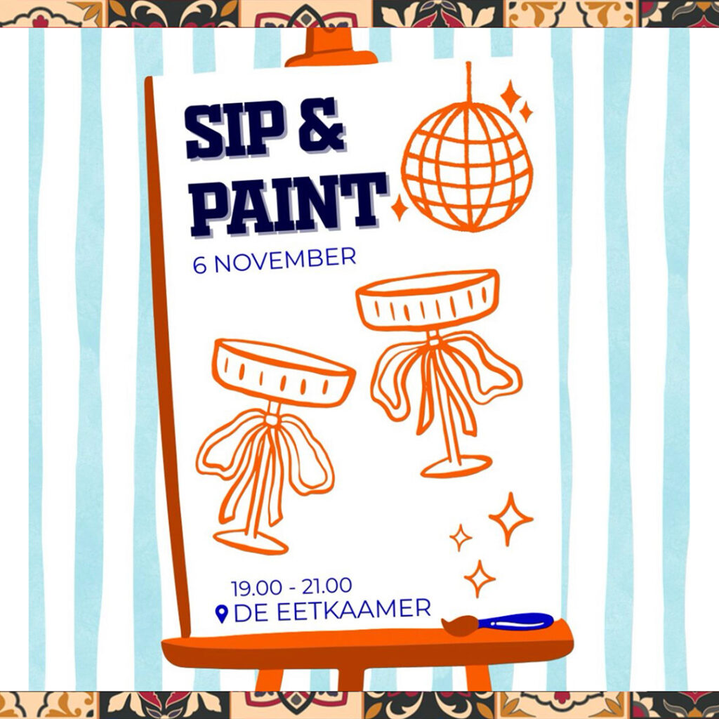 Op donderdag 6 november organiseert Campus Club Uden bij De Eetkaamer een sfeervolle Sip & Paint!